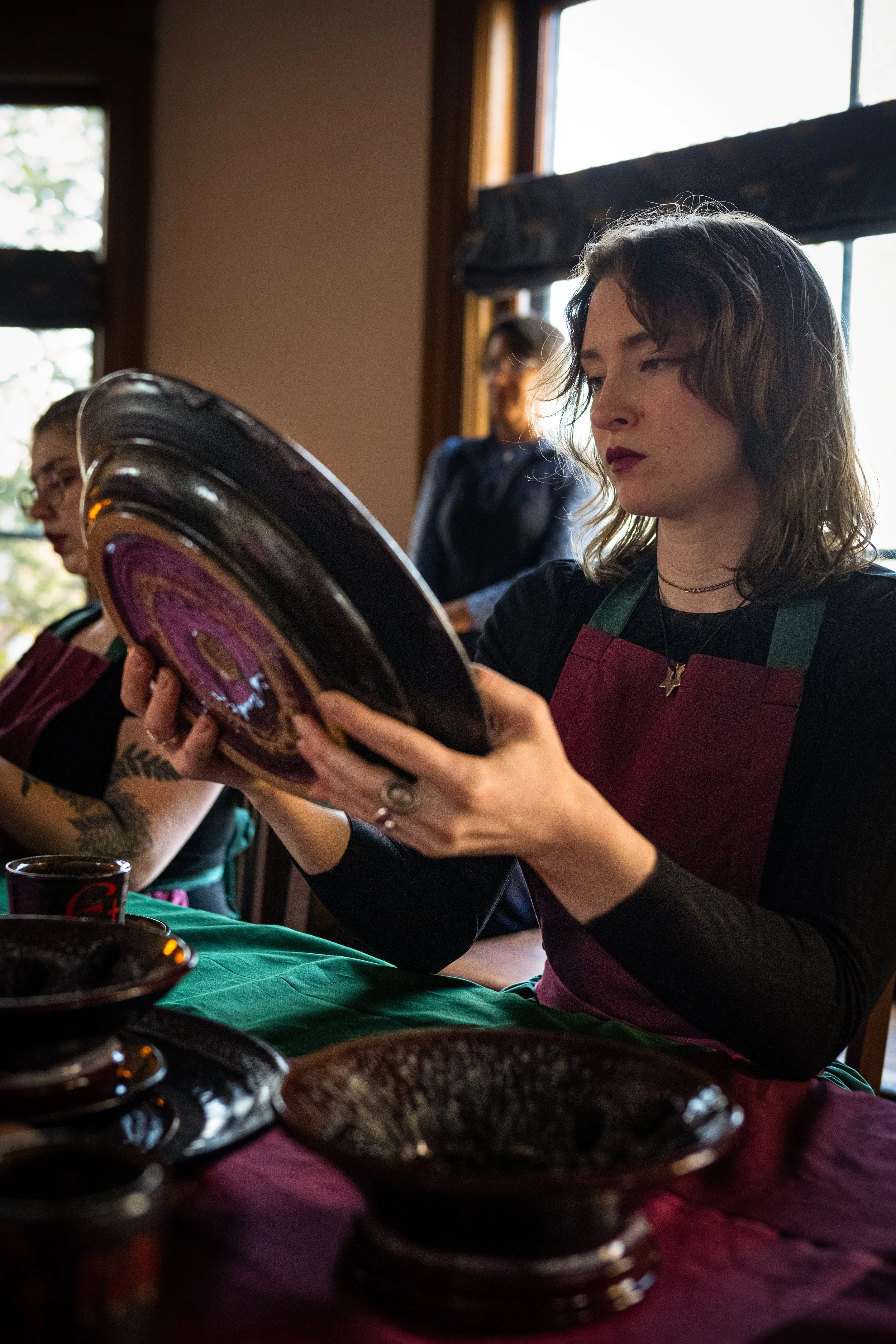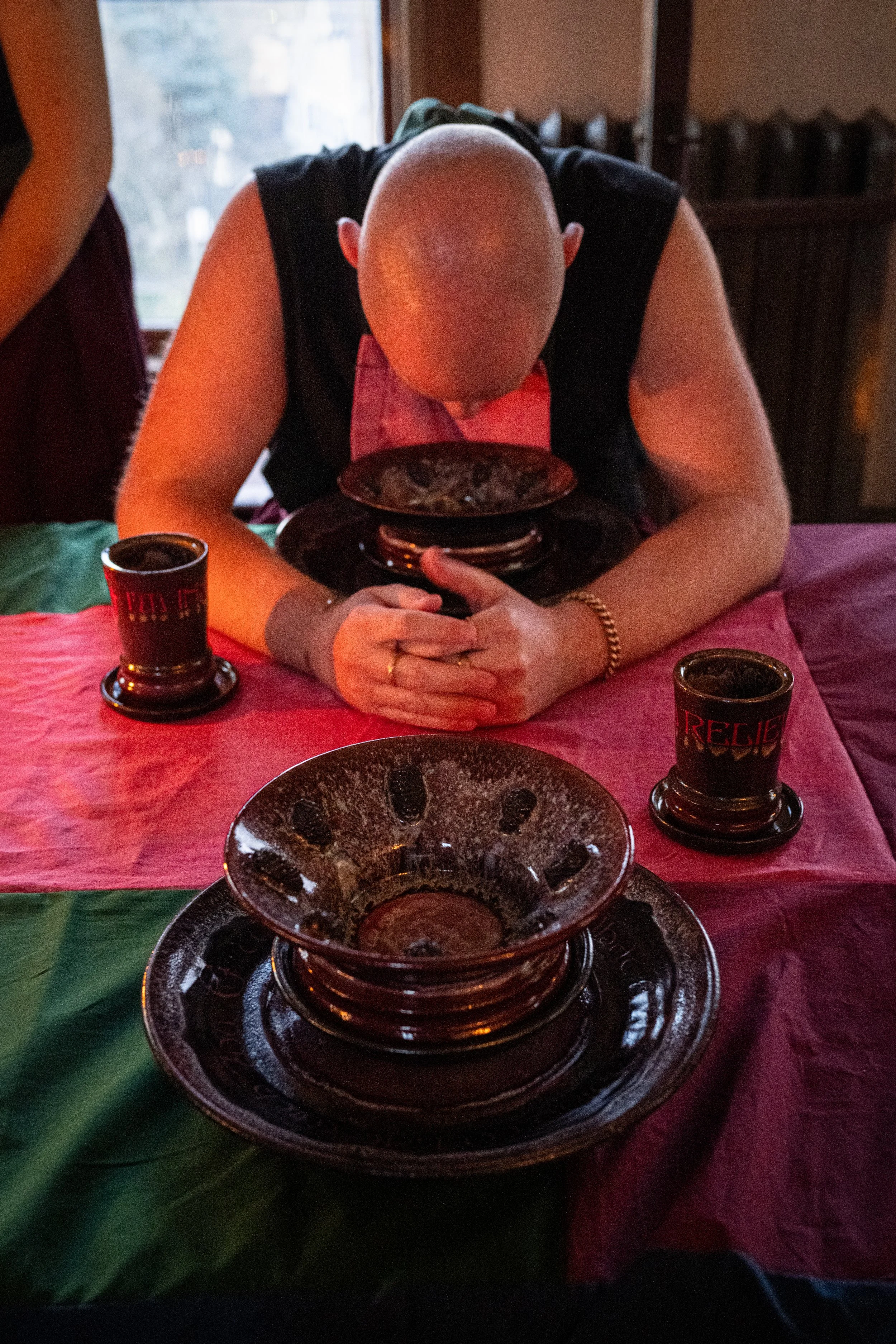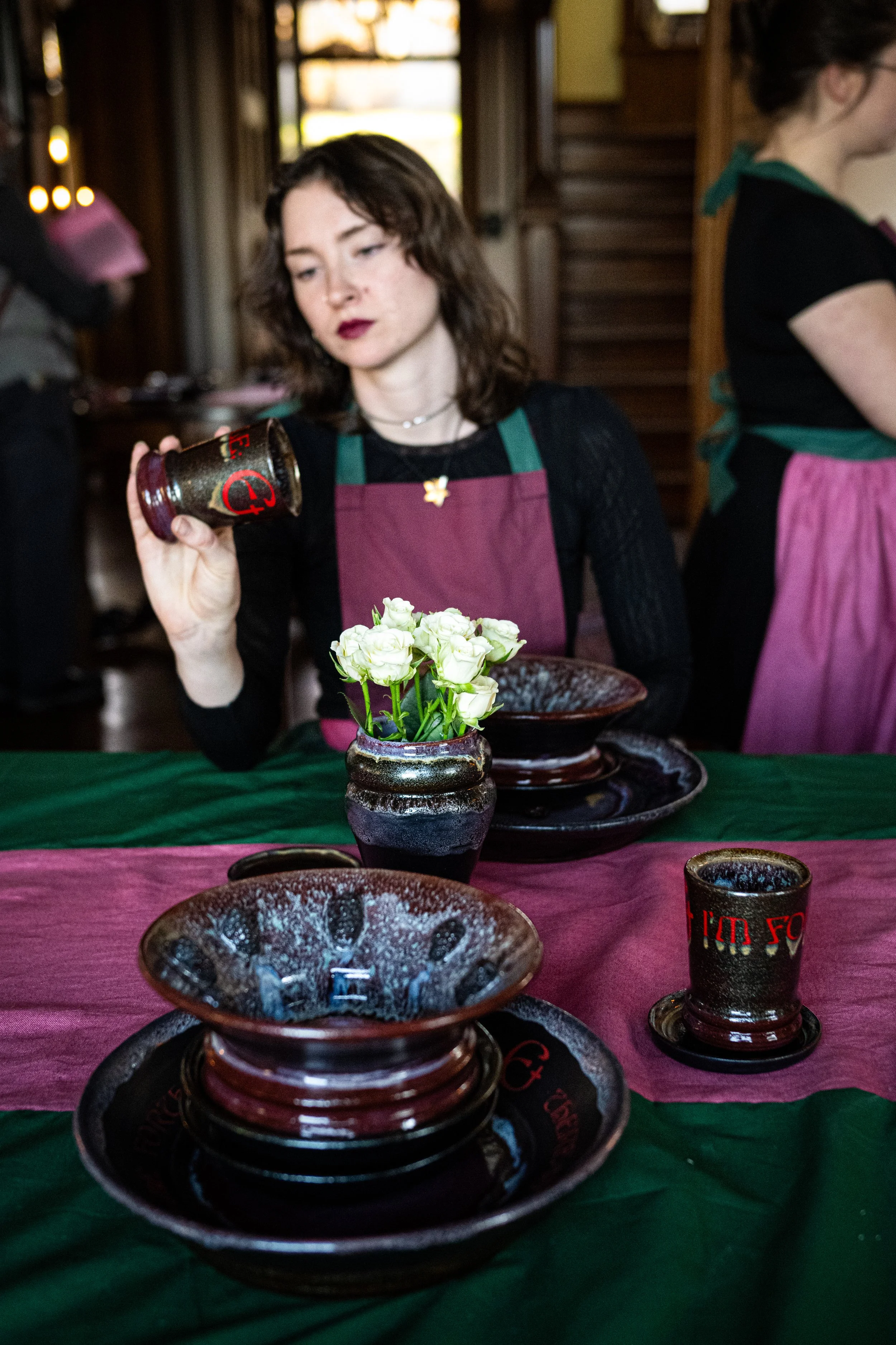 Throughout the two hours, this space was activated by the comings and goings of guests, of performers’ bodies, of sonic play between singers and those recounting the texts superimposed upon ceramic wares.
