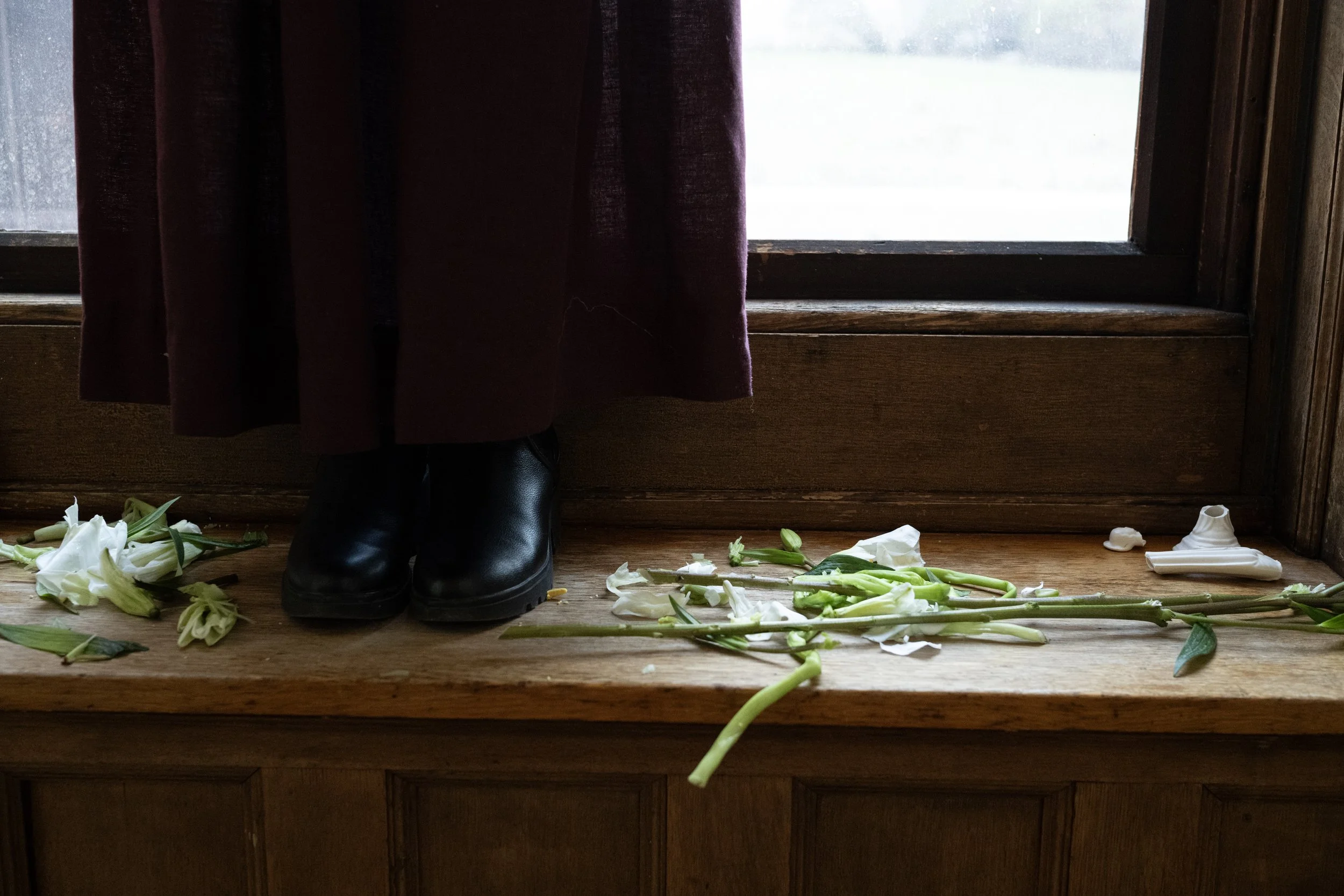 The heart of the home, and the liminal space between the first and second floors. Performers moved up and down the stairwell over the course of the two hours, while the powerful soprano voice of Maeve Lynn Sørensdatter filled the entire house with the circular recitation of ‘Come and Find the Quiet Center.’