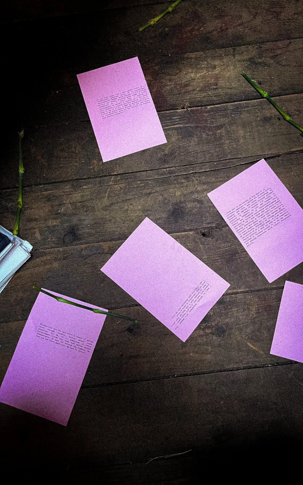 Four performers took turns grinding, rubbing, and blending ink with fruits; writing and stating aloud that “it is not enough to be devotional and restless” in the wake of profound injustice.